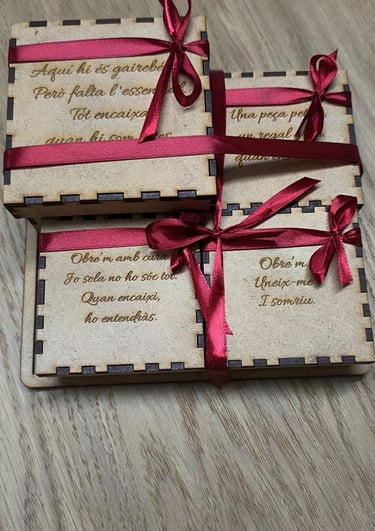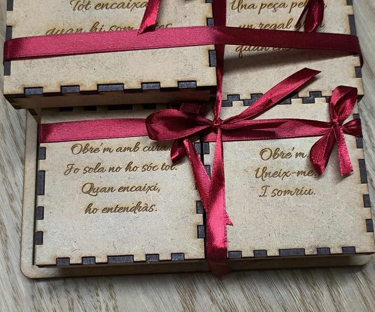 Detalls en fusta amb gravat làser cuidat i precís.